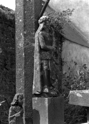 Détail d'une statue posée devant le fût du calvaireImmatriculation