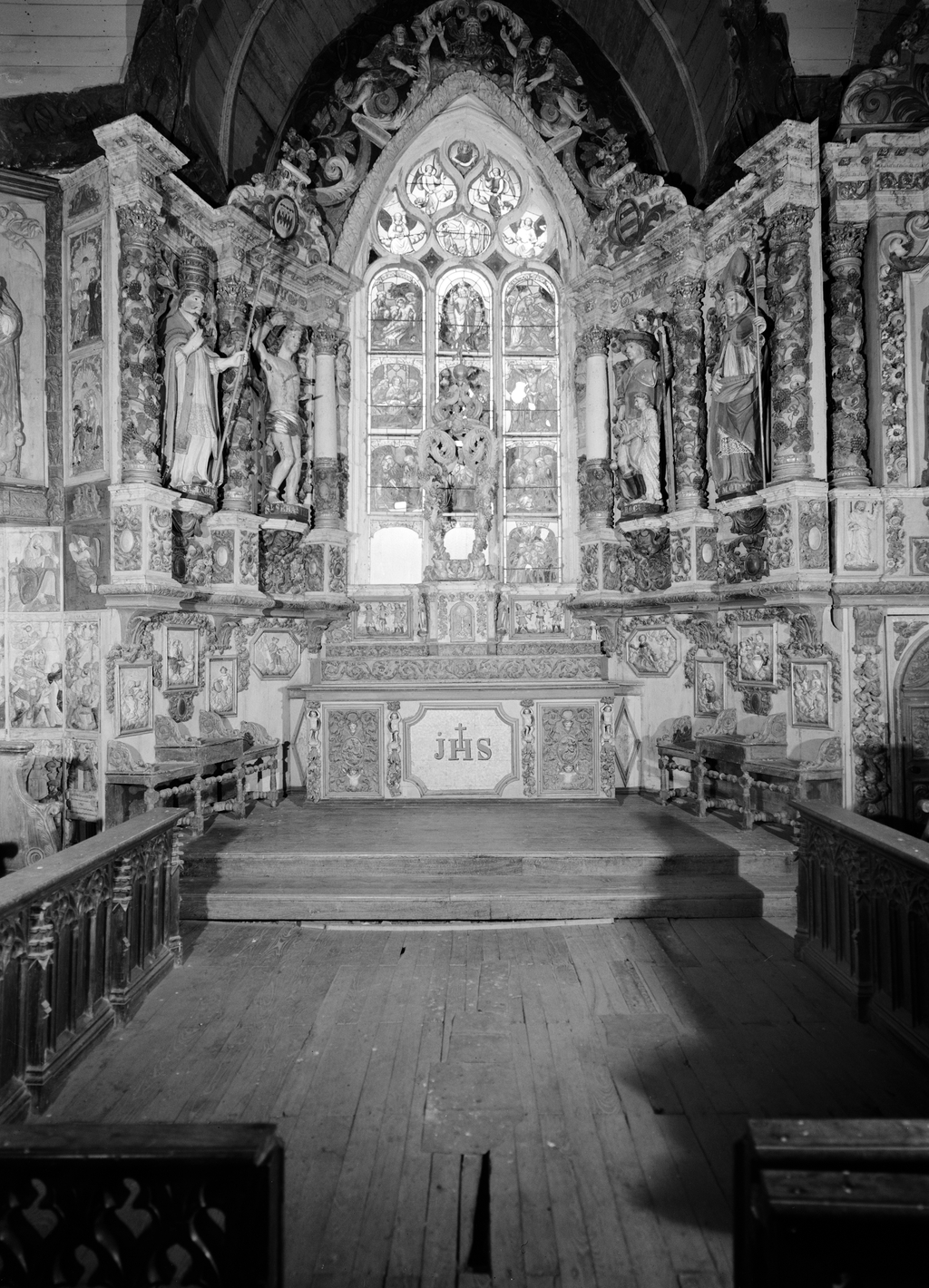 Ensemble (autel, retable, 2 gradins d'autel, 8 bas-reliefs, tabernacle, exposition), chapelle Saint-Sébastien (Saint-Ségal),