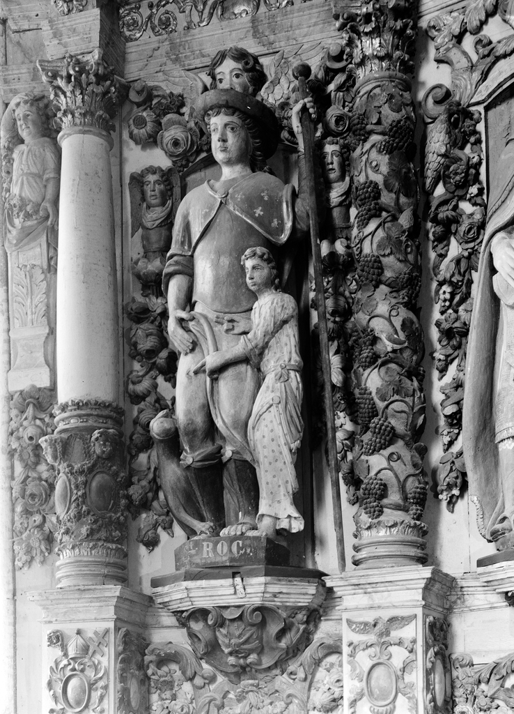 Groupe sculpté (petite nature) : saint Roch, chapelle Saint-Sébastien (Saint-Ségal),