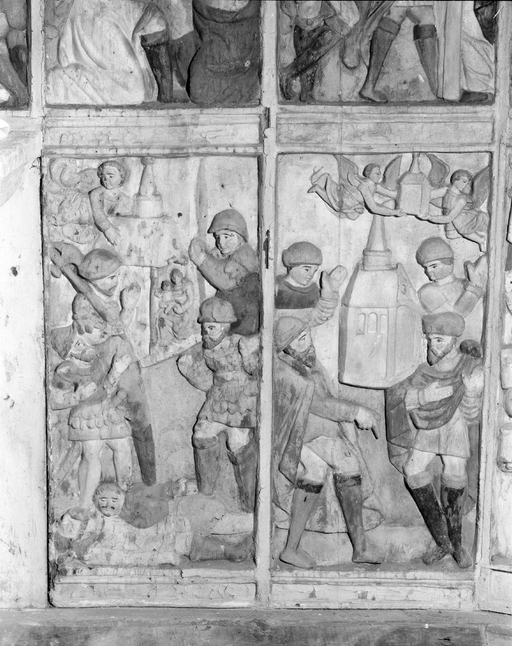 Bas-reliefs (12) (série) : la légende de Notre-Dame de lorette, chapelle Saint-Sébastien (Saint-Ségal),