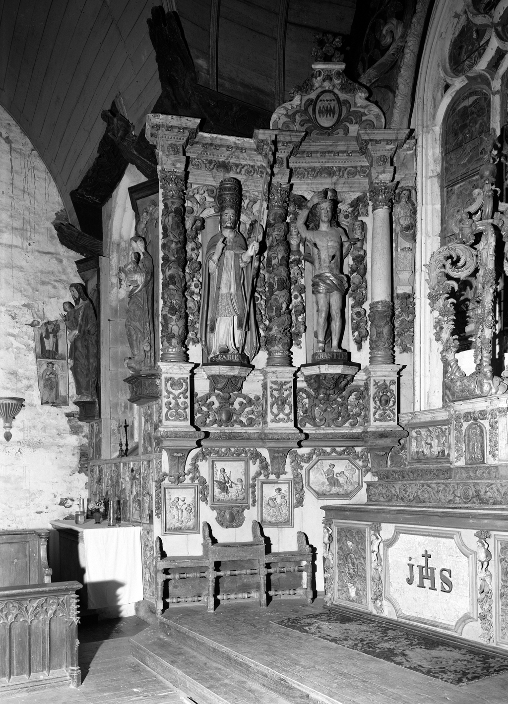 Retable (retable architecturé), retable de saint Sébastien, chapelle Saint-Sébastien (Saint-Ségal),
