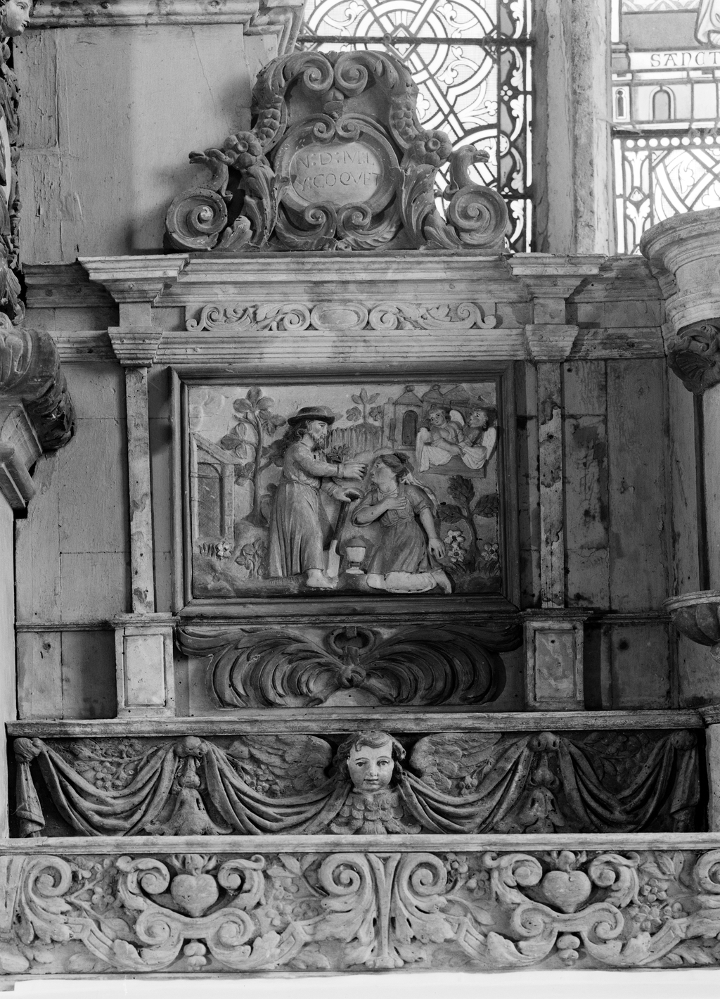 Autel, panneau latéral gauche 'le Christ Jardinier'Immatriculation