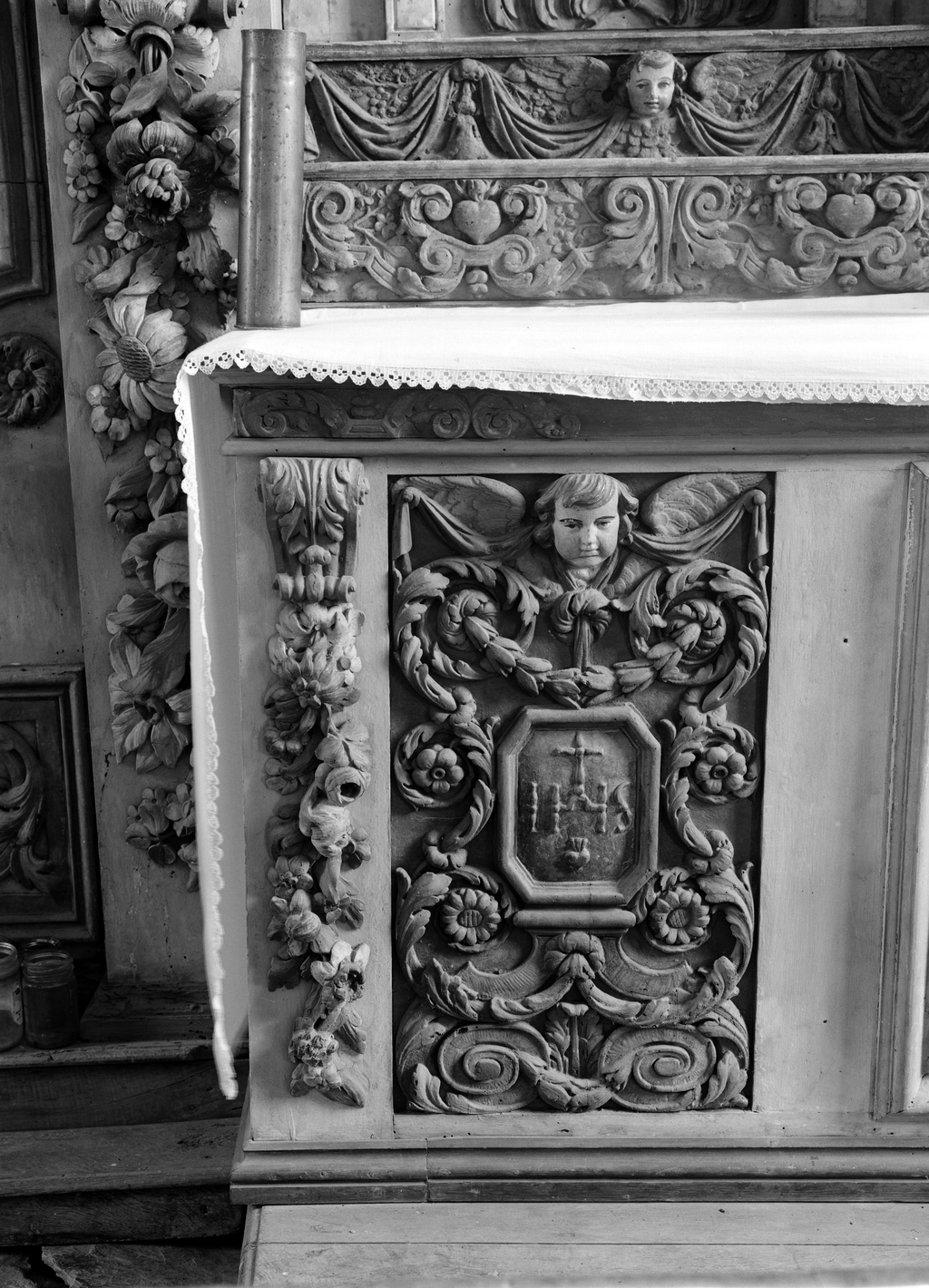 Autel, tabernacle, gradins d'autel (2) (autel secondaire, tabernacle à ailes), chapelle Saint-Sébastien (Saint-Ségal),