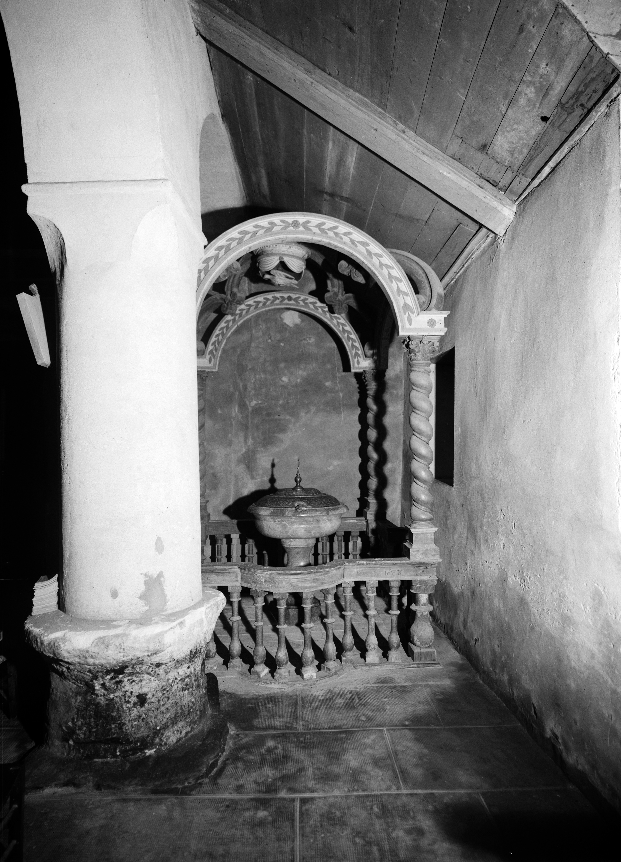 Fonts baptismaux, clôture des fonts baptismaux, baldaquin des fonts baptismaux, église paroissiale Saint-Coulitz (Saint-Coulitz),