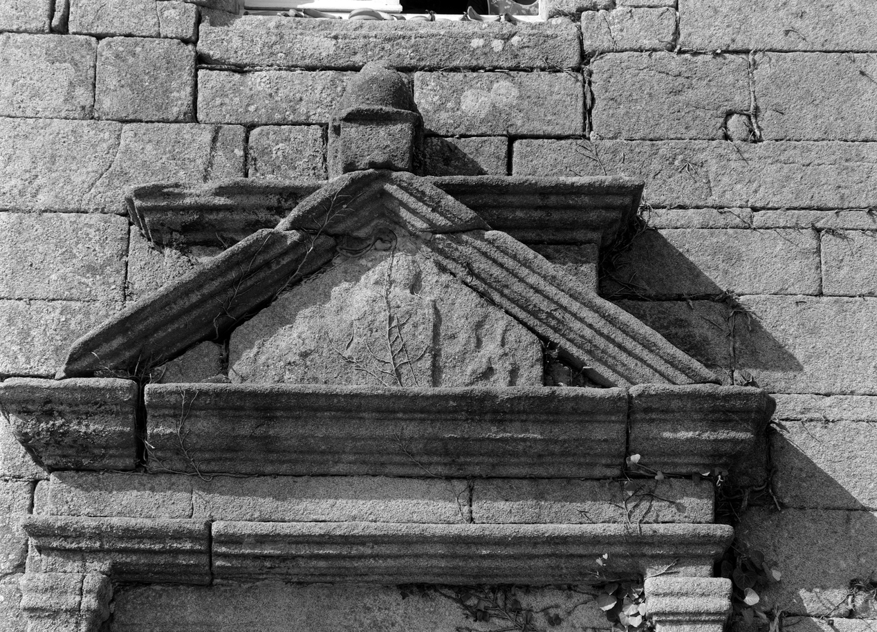 Détail du fronton de la porte centrale sur la façade sudImmatriculation