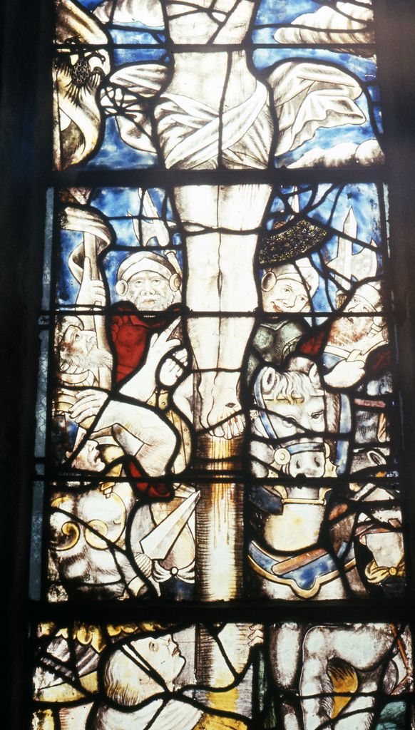 Verrière (maîtresse-vitre) : Crucifixion, chapelle Sainte-Barbe (Ploéven),