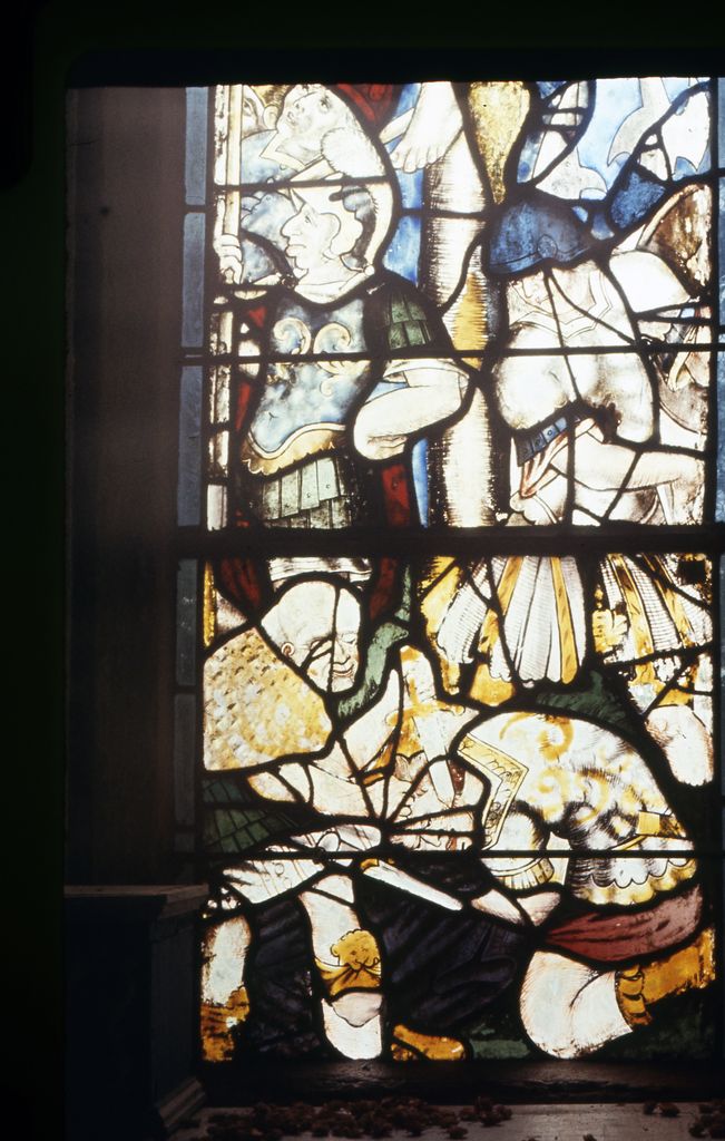 Verrière (maîtresse-vitre) : Crucifixion, chapelle Sainte-Barbe (Ploéven),