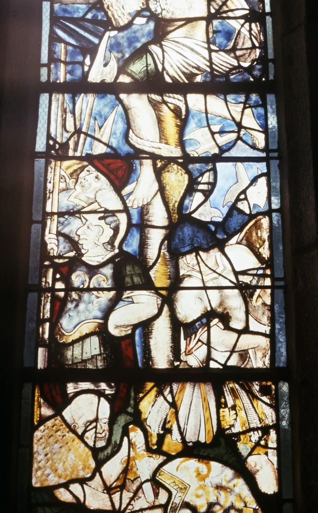 Verrière (maîtresse-vitre) : Crucifixion, chapelle Sainte-Barbe (Ploéven),