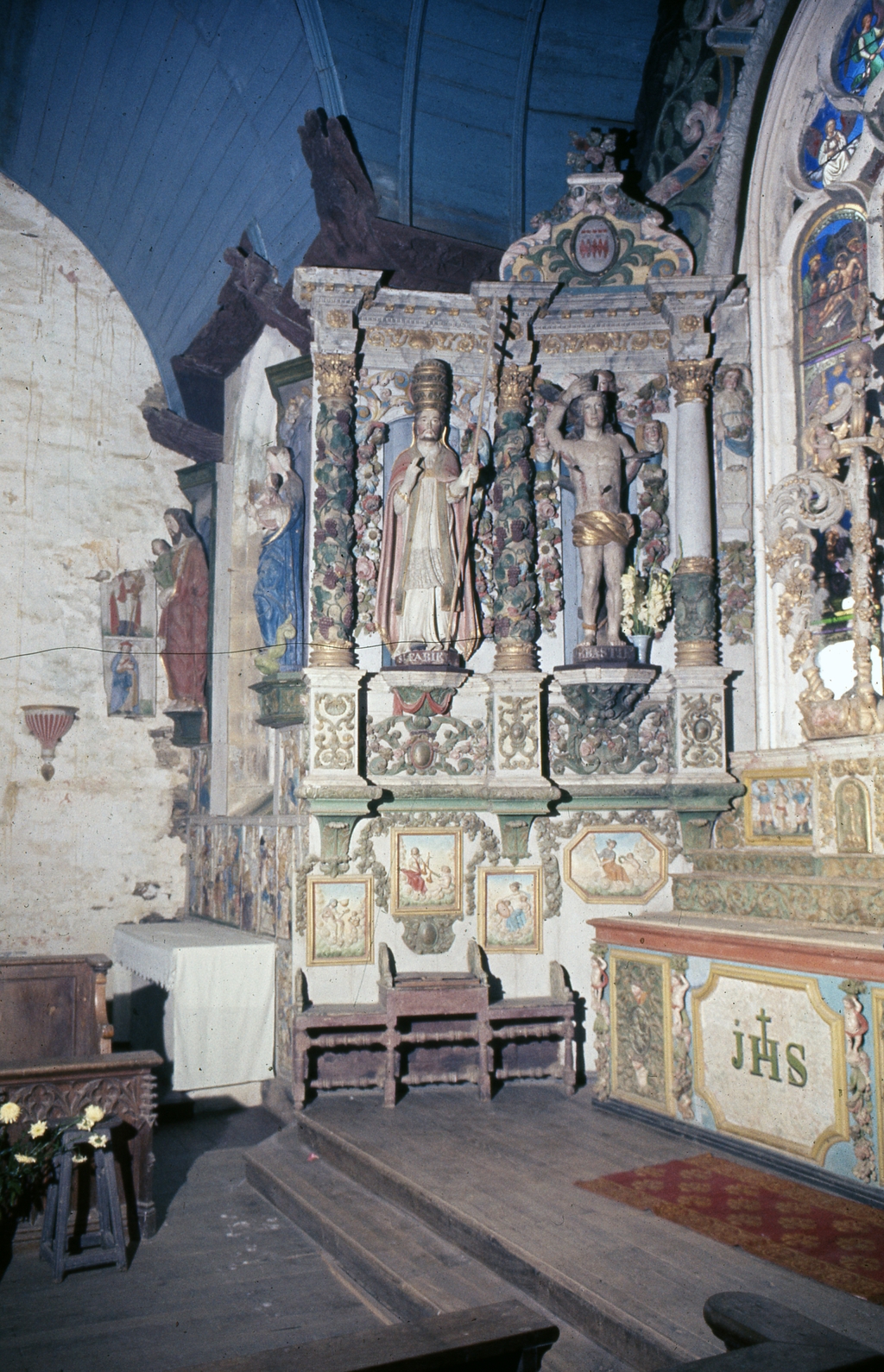 Ensemble (autel, retable, 2 gradins d'autel, 8 bas-reliefs, tabernacle, exposition), chapelle Saint-Sébastien (Saint-Ségal),
