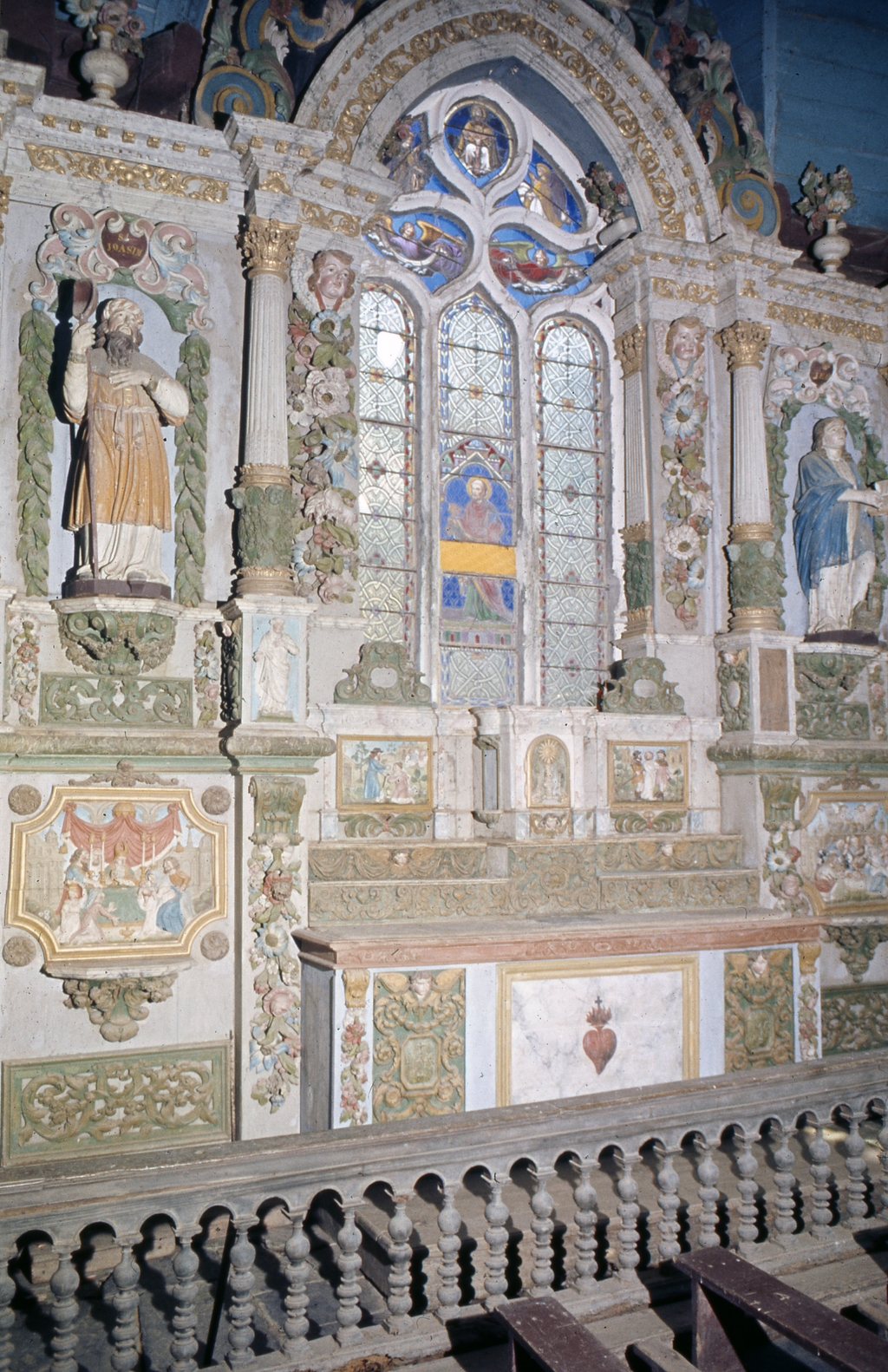 Ensemble (autel, retable, 2 gradins d'autel, 8 bas-reliefs, tabernacle, exposition), chapelle Saint-Sébastien (Saint-Ségal),
