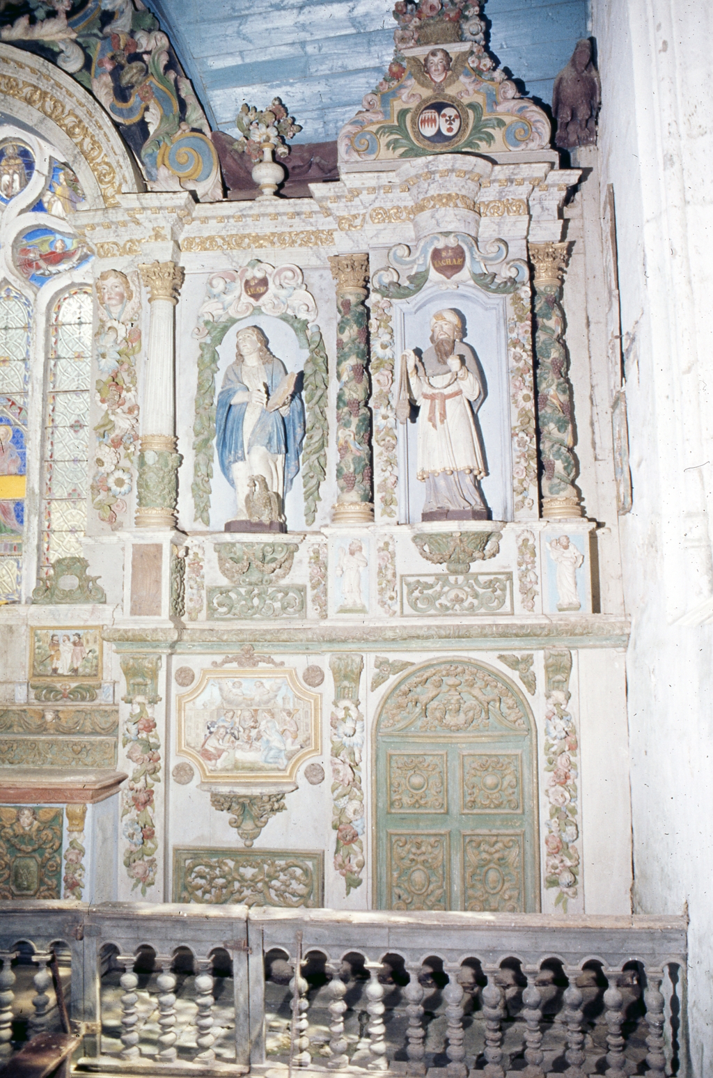 Ensemble (autel, retable, 2 gradins d'autel, 8 bas-reliefs, tabernacle, exposition), chapelle Saint-Sébastien (Saint-Ségal),