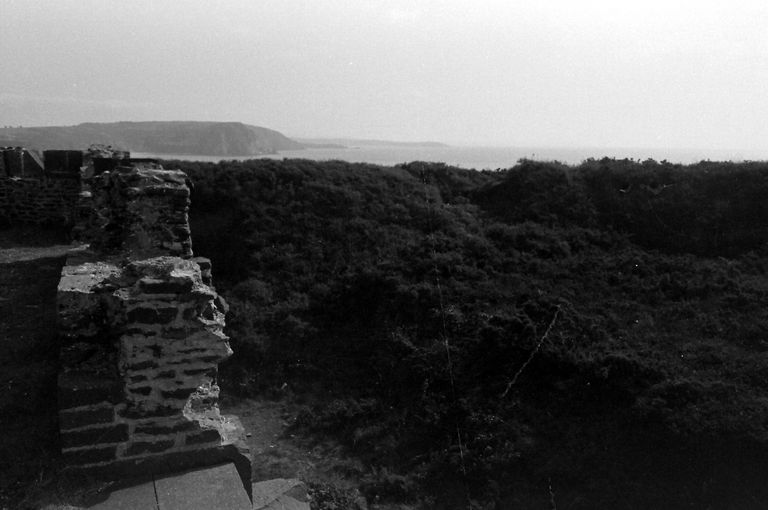 Vue de la batterie de l'île de l'Aber depuis la terrasse du corps de garde crénélé en 1972Immatriculation