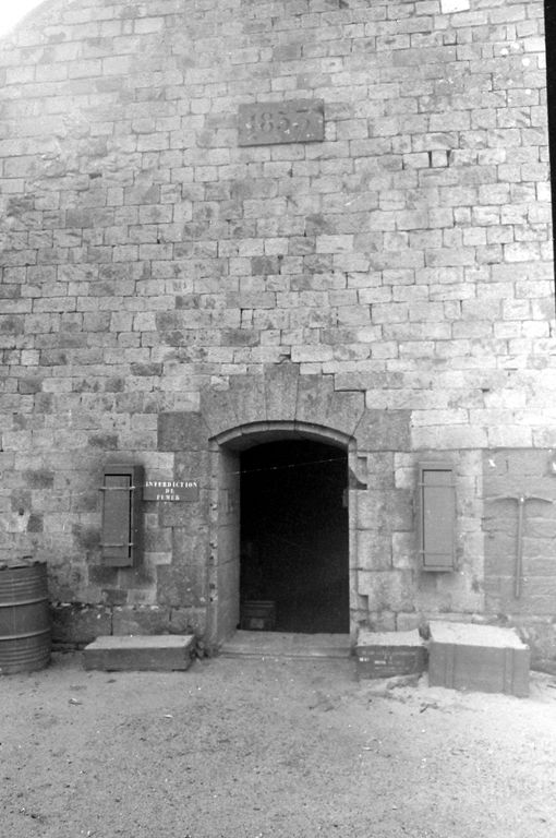 Vue du magasin à poudre du réduit de Quélern en 1972 : entrée, datée de 1853Immatriculation