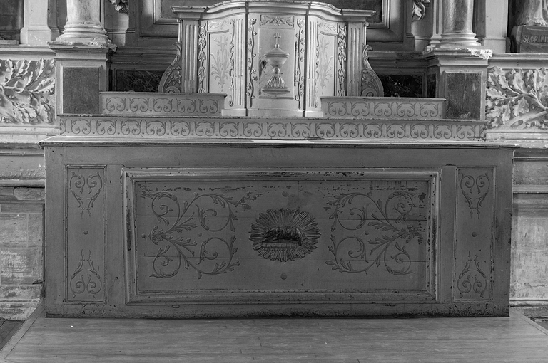 Autel et tabernacle du maître-autel, église paroissiale Saint-Pierre (Dompierre-du-Chemin fusionnée en Luitré-Dompierre en 2019),
