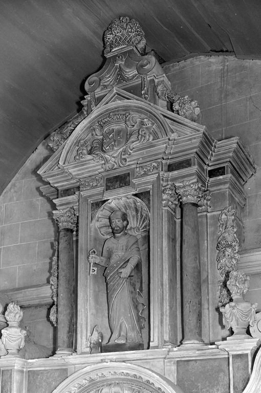 Retable du choeur, niche de couronnement, vue générale.Immatriculation