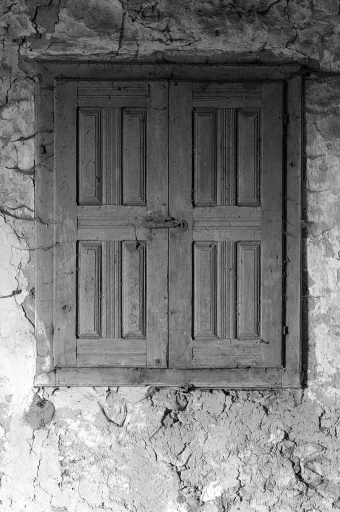 Grande chambre , premier étage, mur nord, armoire, portes fermées.Immatriculation