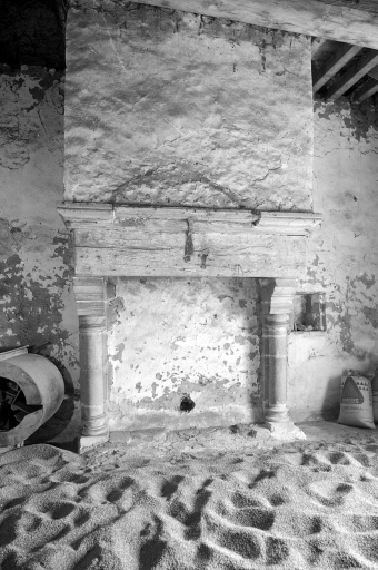 Etage, pièce sud, mur pignon, cheminée 2, vue générale.Immatriculation