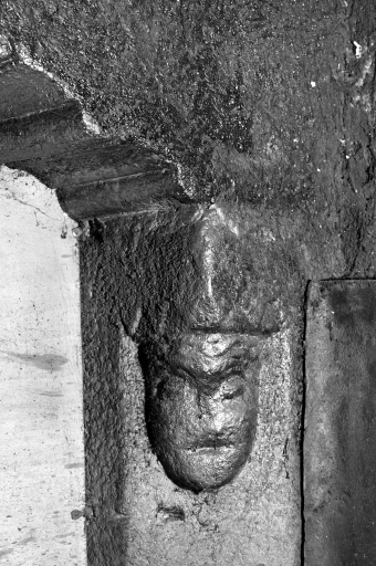 Cheminée, détail de tête sculptée.Immatriculation