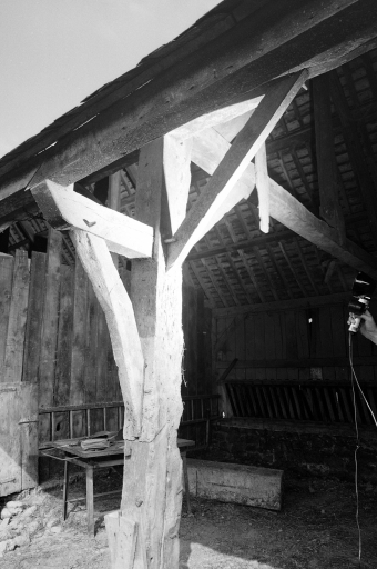 Dépendances sud, hangar, détail de la charpente.Immatriculation
