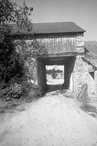 Dépendances sud, porche, vue de détail.Immatriculation
