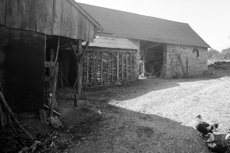 Dépendances ouest, remise et porche, façade nord, vue générale.Immatriculation