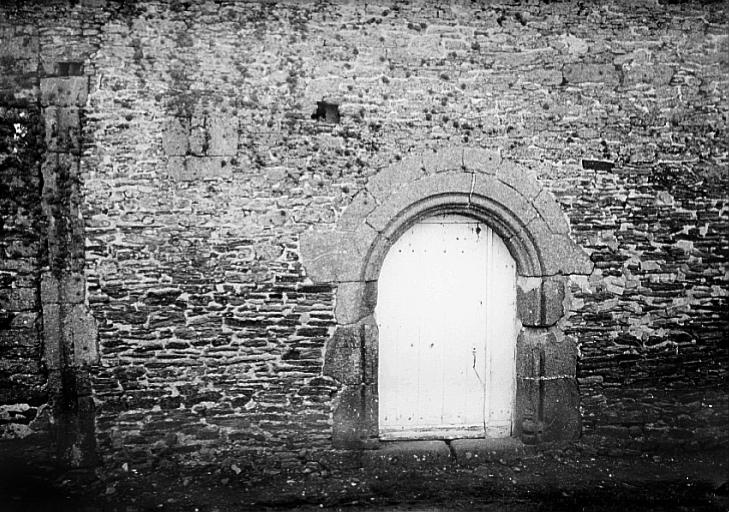 Détail : porte en plein cintre en façade nord ; aucun évier ne correspond aujourd'hui à l'écoulement visible à gauche de l'image (cliché 1972)Immatriculation