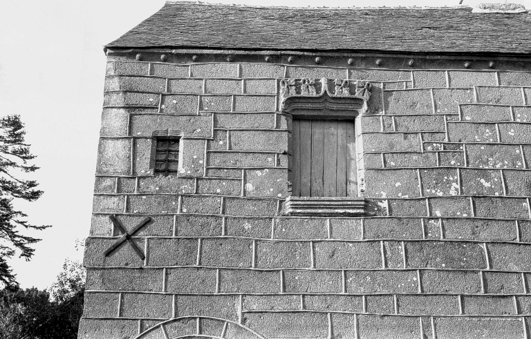 Façade antérieure, fenêtre de la chambre : détailImmatriculation