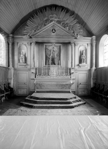 Ensemble du maître-autel et des deux autels latéraux : 3 autels, 3 retables, 3 tabernacles,