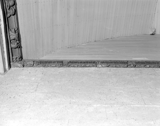 Inscription sur la sablière du mur sud de la nef (au-dessus de la porte de la porte)Immatriculation