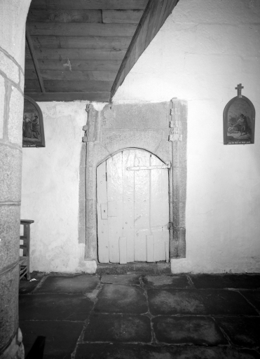 Nef, collatéral sud : porte ouvrant sur l'escalier qui conduit à l'étage du porcheImmatriculation