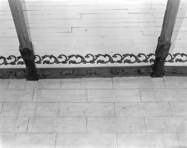 Décor de charpente : 9 sablières, 7 blochets, 1 poinçon et 4 entraits,