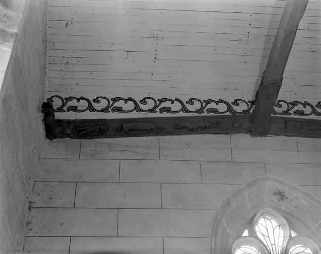 Décor de charpente : 9 sablières, 7 blochets, 1 poinçon et 4 entraits,