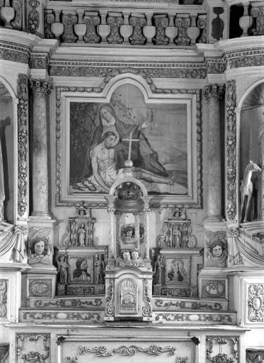Ensemble du maître-autel : autel, retable, tabernacle, exposition, tableau d'autel (Vierge de Pitié),