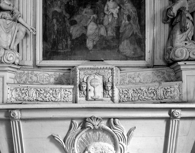 Ensemble du maître autel : autel, tabernacle, retable, tableau d'autel (Naissance de la Vierge),