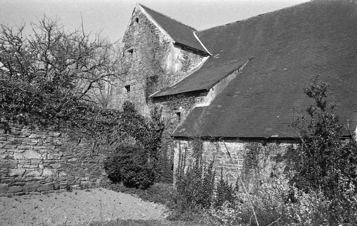 Minihy-Tréguier : manoir de Saint-Renaud, appentis arrière ouest et pignon ouest percé d'un oculus et par plusieurs fenêtres (murées), photographie de 1973Immatriculation