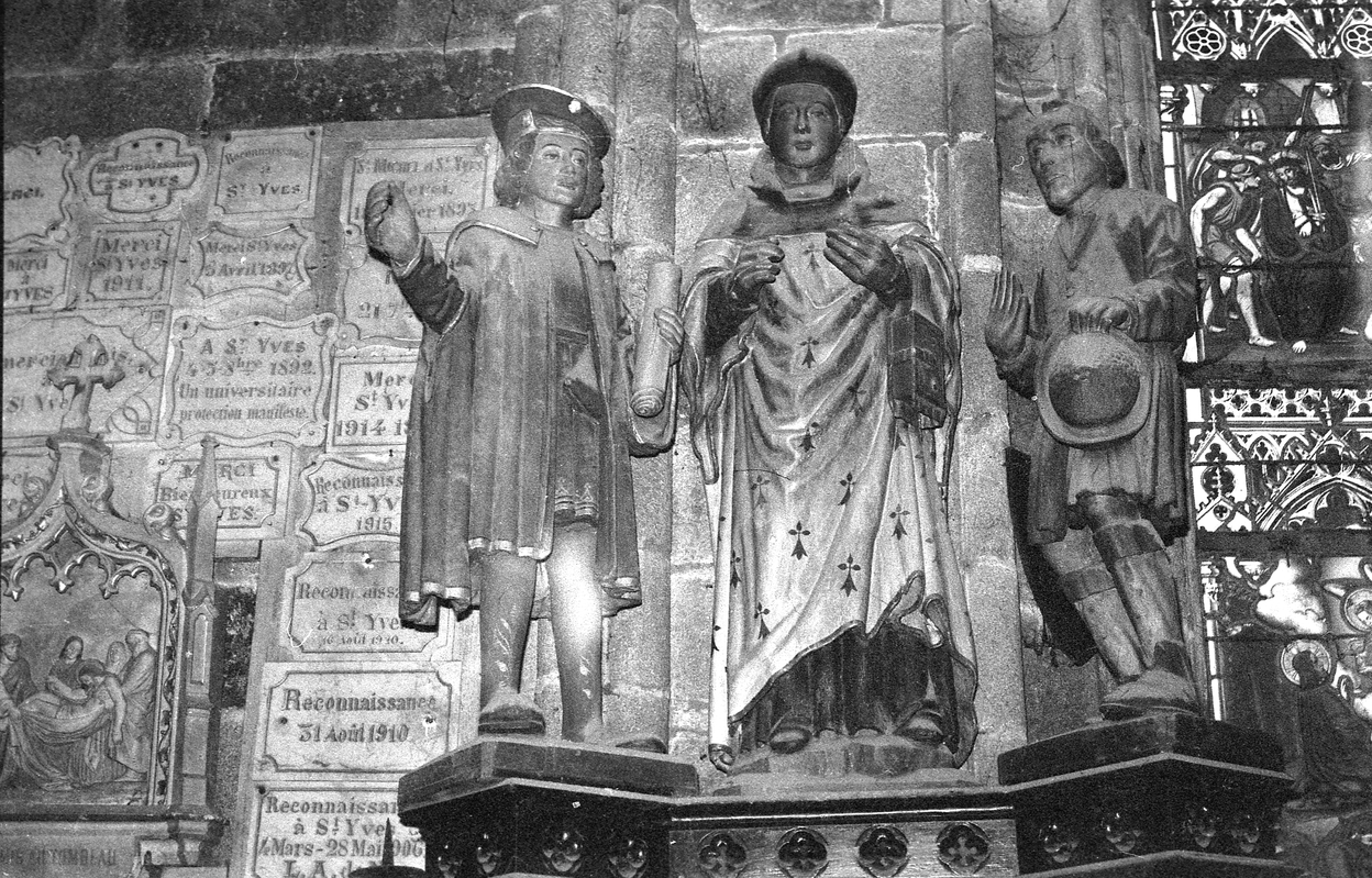 Groupe sculpté : saint Yves entre le riche et le pauvre (Minihy-Tréguier),