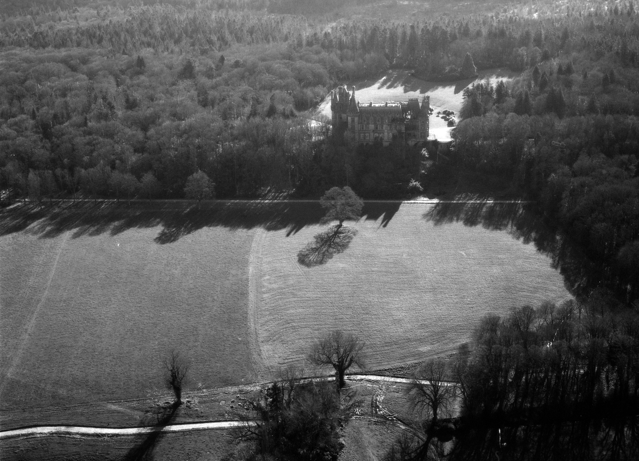Vue aérienne du château et de la chapelle prise du nordImmatriculation