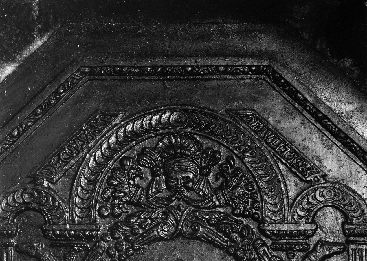 Ancien manoir : cheminée est du rez-de-chaussée, inscriptionImmatriculation