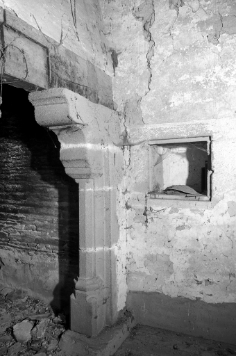 Etage, pièce ouest, cheminée, détail piédroit.Immatriculation