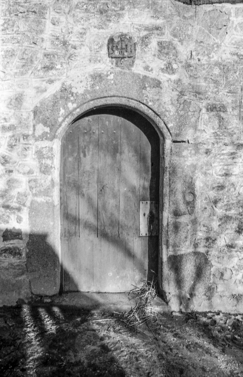 Ouverture plein-cintre en granit de la porte de l'étable avec inscription (état en 1973)Immatriculation