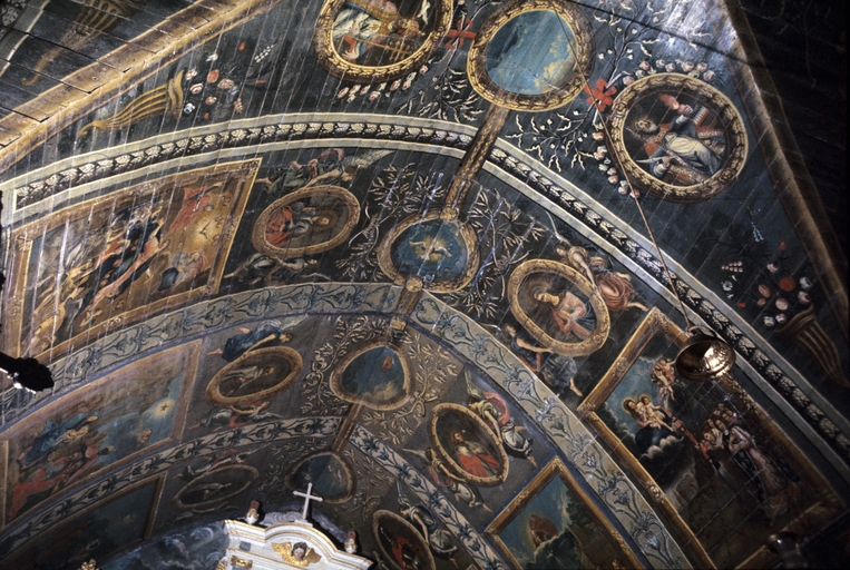 Ensemble de peintures de plafond A, nef sud, partie est : vue générale.Immatriculation