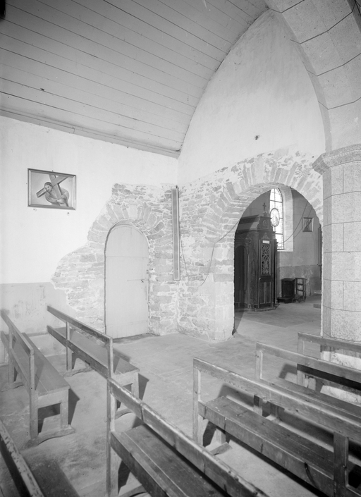 Vue de la porte du collatéral nord et de l'arc diaphragme prise du sud-ouestImmatriculation