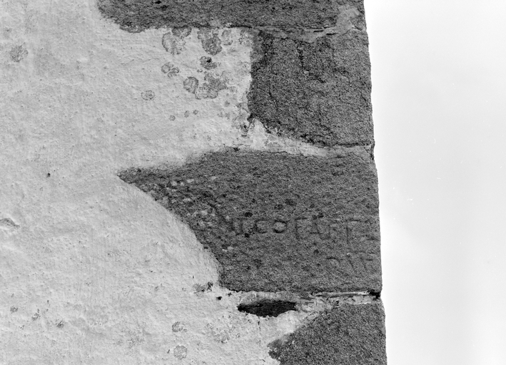 Inscription, pierre de chaînage angle sud-ouest du bras sudImmatriculation