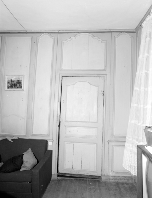 Premier étage, pièce nord, mur ouest, fenêtre et panneau intermédiaire, vue de l'estImmatriculation