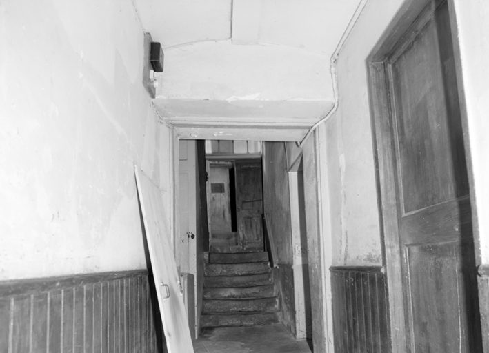 Vue du couloir d'entrée de la porte vers l'escalier (rez-de-chaussée)Immatriculation
