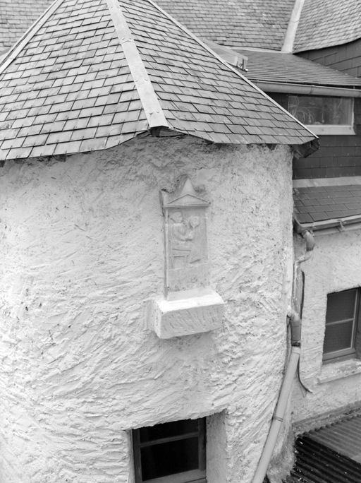 Détail stèle grecque encastrée dans le mur de la tourelleImmatriculation