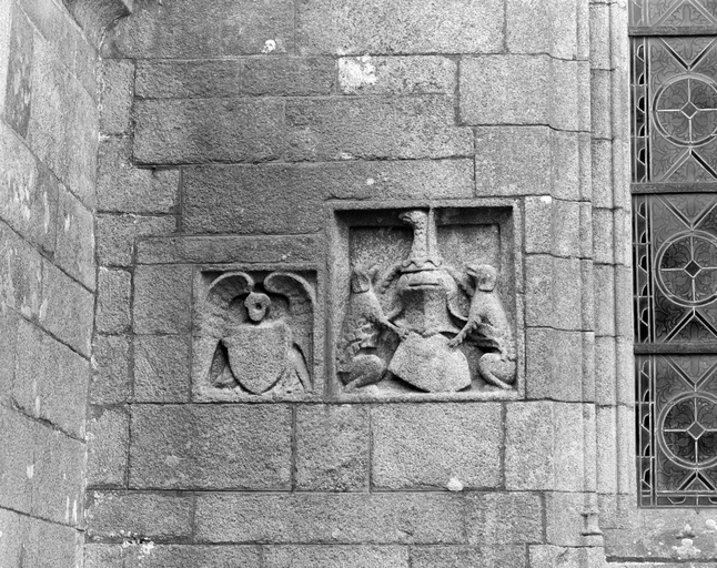 Façade sud :écu tenu par un ange ; écu supporté par des chiensImmatriculation