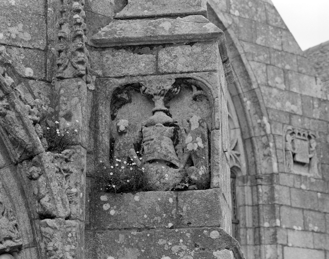 Façade sud, contrefort, écu supporté par des lionsImmatriculation