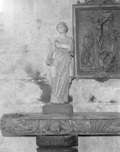 Statue (d'applique, demi-nature) : sainte Apolline, église paroissiale Saint-Ronan (Locronan),