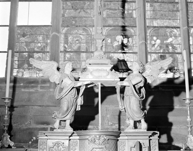 Autel, tabernacle, exposition, gradins d'autel (2) (maître-autel, tabernacle à ailes), église paroissiale Saint-Ronan (Locronan),